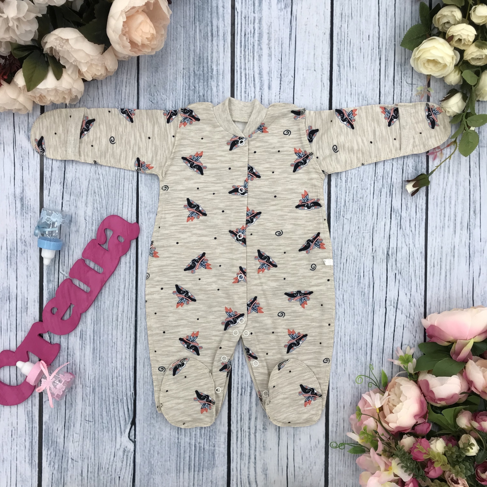 Теги: Купить оптом комбинезон с рисунком. 271-С. Комбинезон, хлопок 100 % кулирка 56,62,68,74,80, серый цена,отзывы официальный сайт "Стеша Магнитогорск"