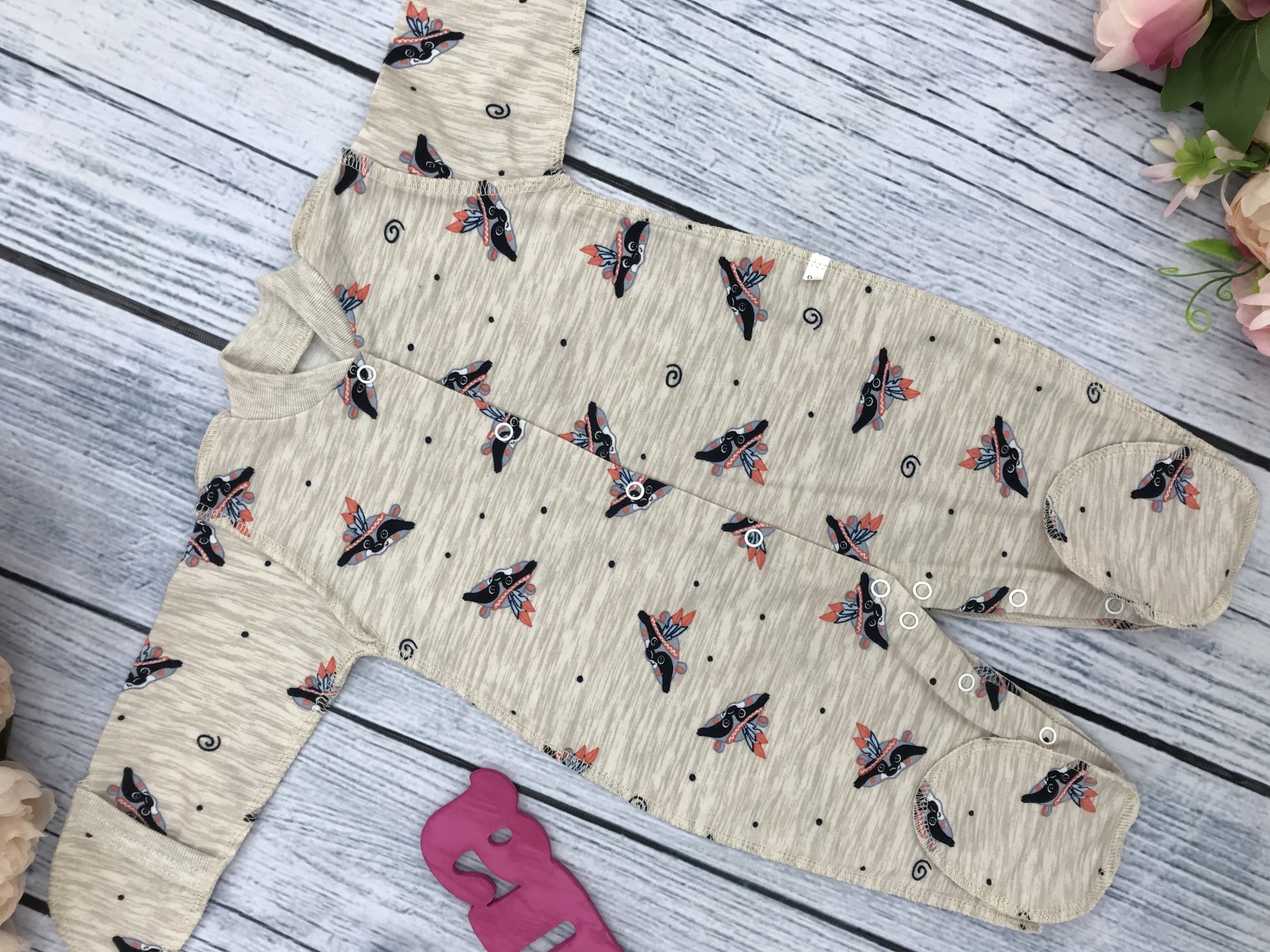 Комбинезон из кулирной глади -пенье с набивным рисунком.