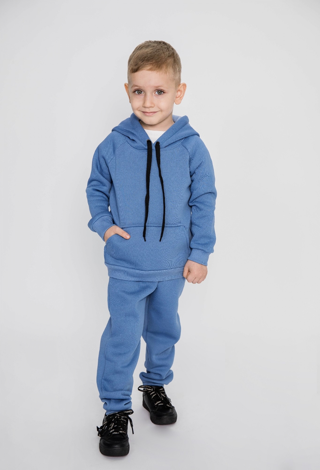 Купить оптом 296-ДЖ. Свитшот с капюшоном + Штаны, хлопок 65%, 35% ПЭ, 3-х нитка (начес) джинсовый 98,104,110,116 в Магнитогорске