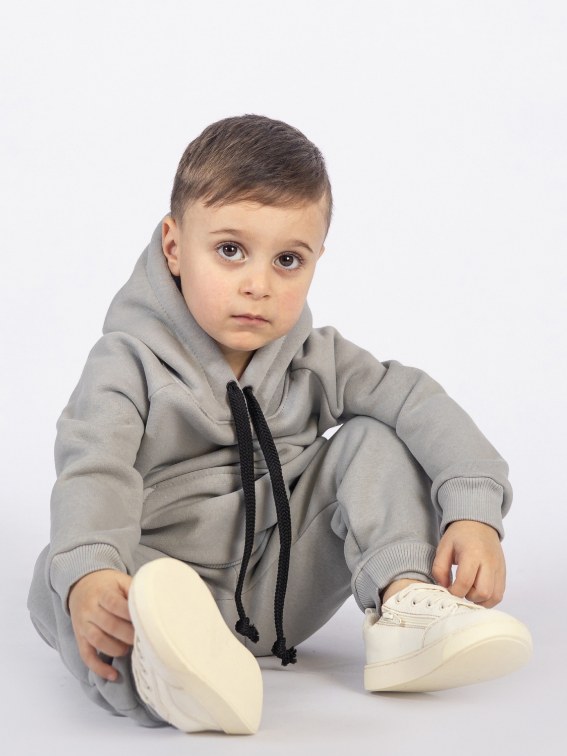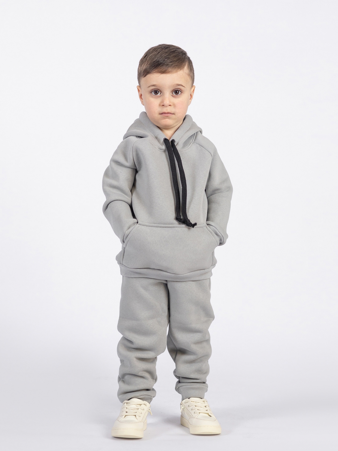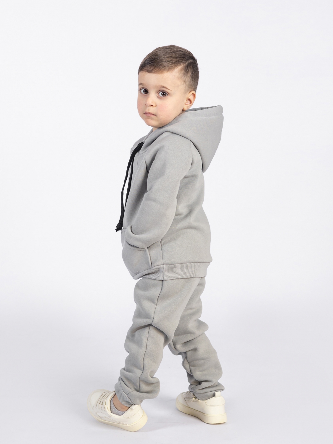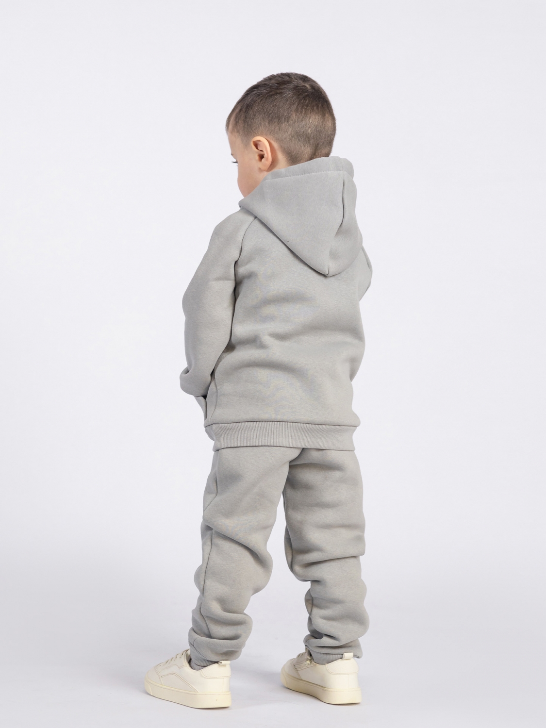 Купить оптом 296-С. Свитшот с капюшоном + Штаны, хлопок 65%, 35% ПЭ, 3-х нитка (начес) серый 122,128,134,140 в Магнитогорске