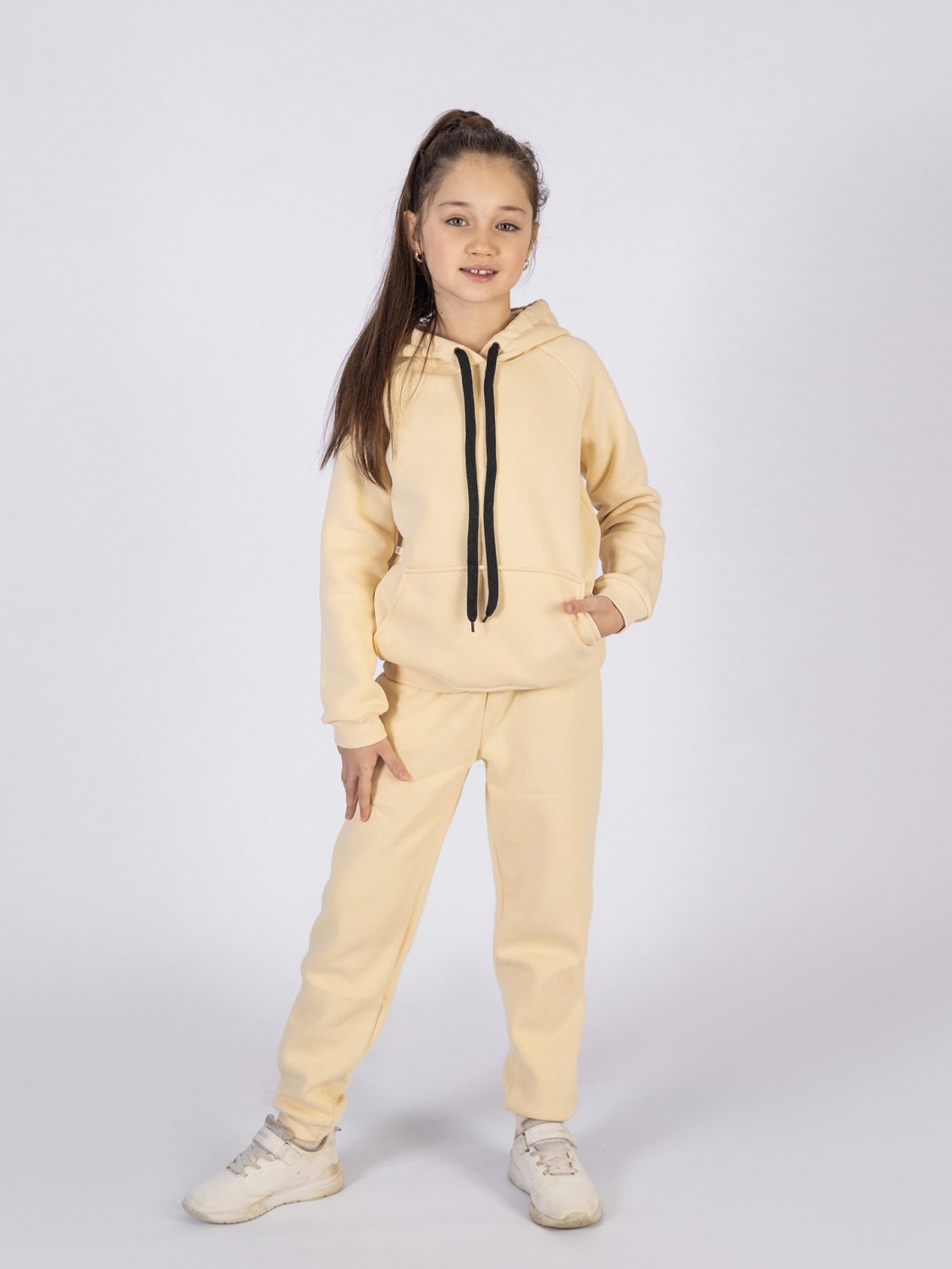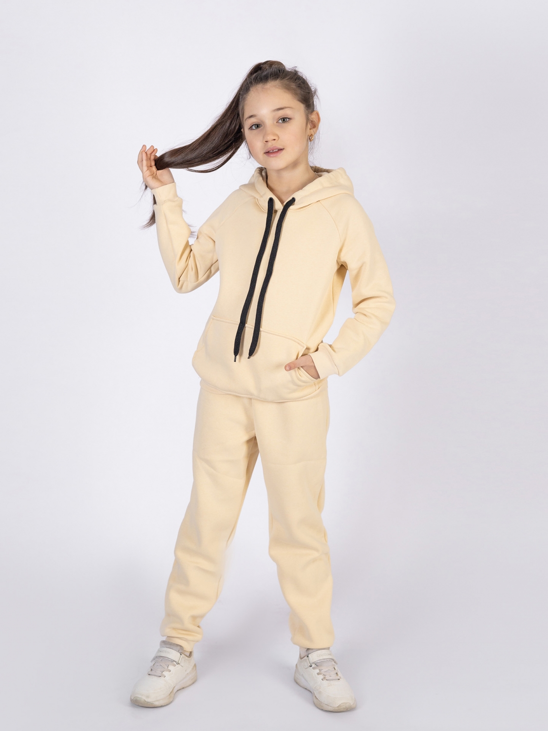 Купить оптом 296-СЛ. Свитшот с капюшоном + Штаны, хлопок 65%, 35% ПЭ, 3-х нитка (начес) сливочный 98,104,110,116 в Магнитогорске