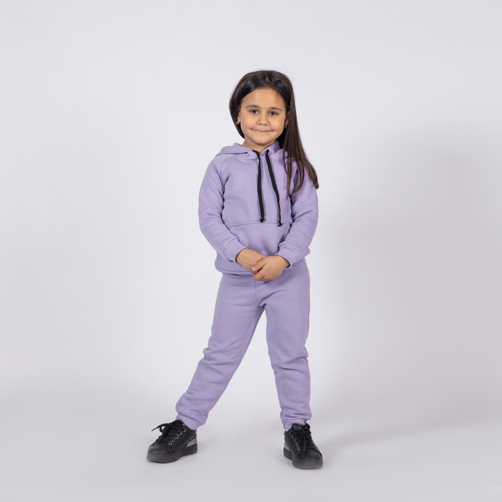 Купить оптом 296-СР. Свитшот с капюшоном + Штаны, хлопок 65%, 35% ПЭ, 3-х нитка (начес) сирень 98,104,110,116 в Магнитогорске